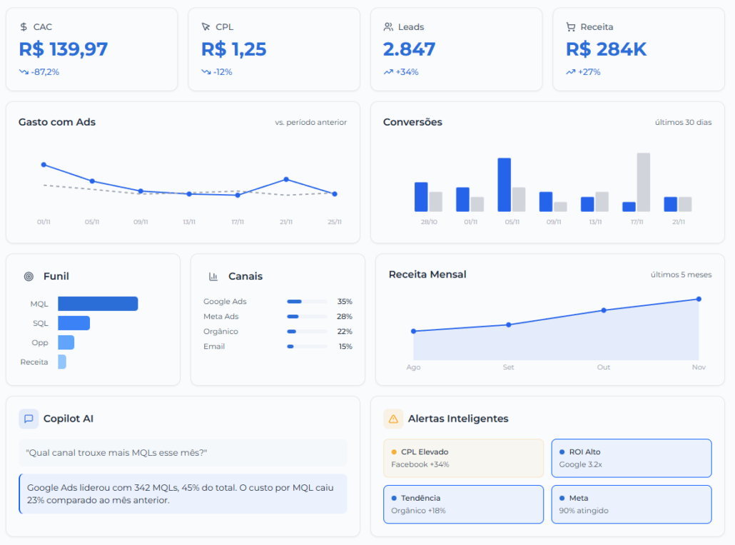 - Otimização de Resultados: Dados integrados facilitam a identificação de quais canais estão gerando mais ROI.